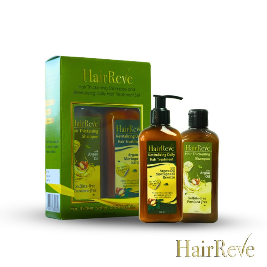Transform your hair care routine with HairReve Revitalizing Daily Hair Treatment, a powerful 2-in-1 solution that works as both a conditioner and a hair mask. Formulated with a blend of Argan Oil, Moringa Oil, and Keratin, this treatment is designed to give you softer, shinier hair while taming frizz, untangling knots, and protecting against heat and pollution.