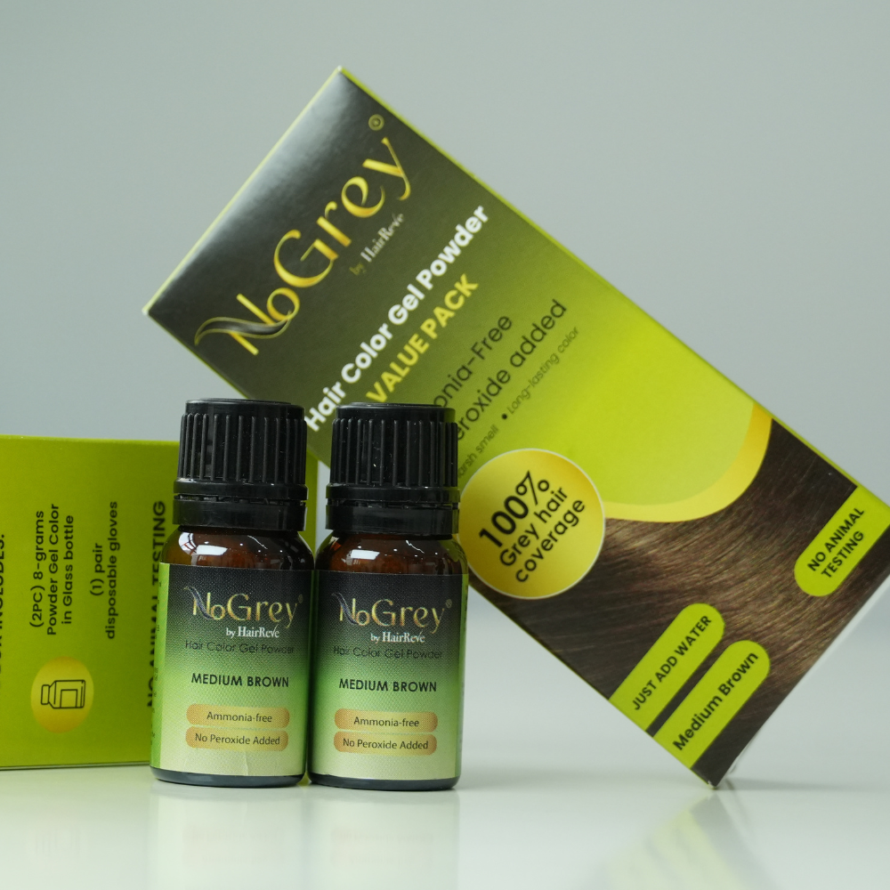Say goodbye to gray hair with NoGrey Hair Color Gel Powder by HairReve. This innovative, ammonia-free, and peroxide-free formula provides 100% gray coverage, long-lasting color, and a gentle, pleasant experience.